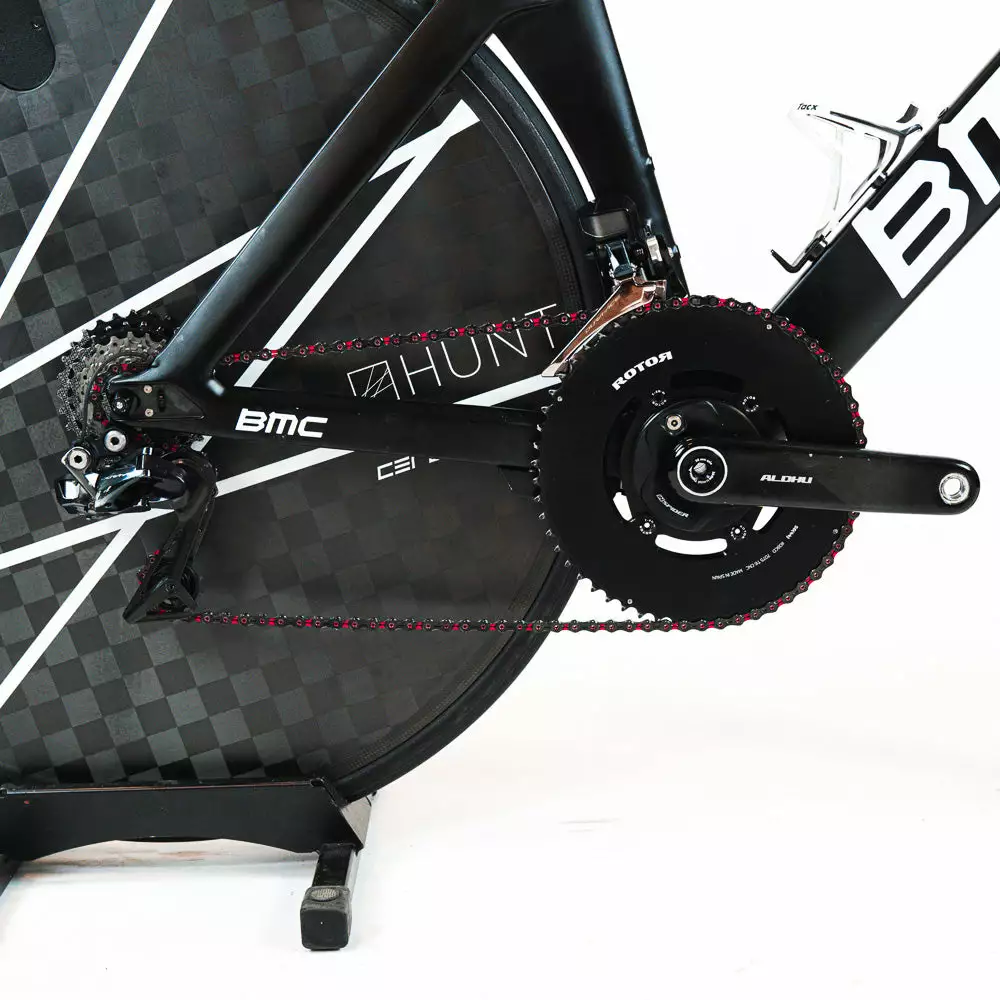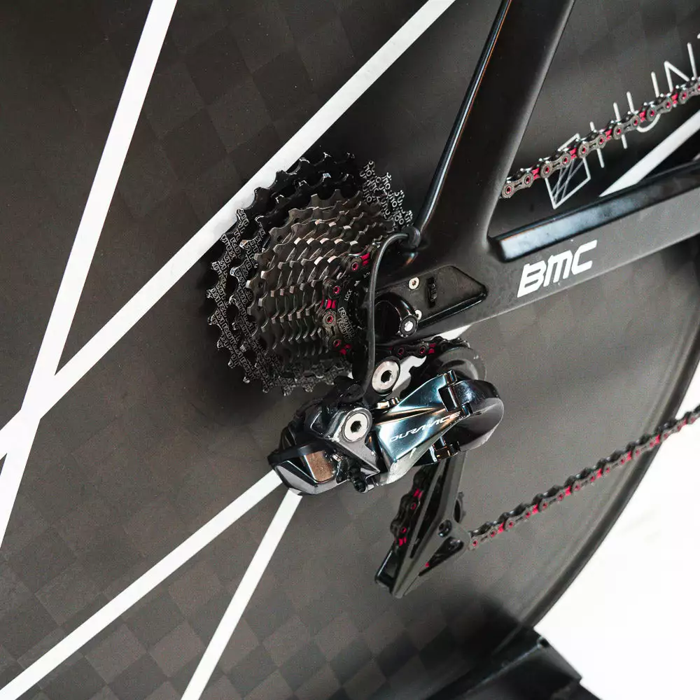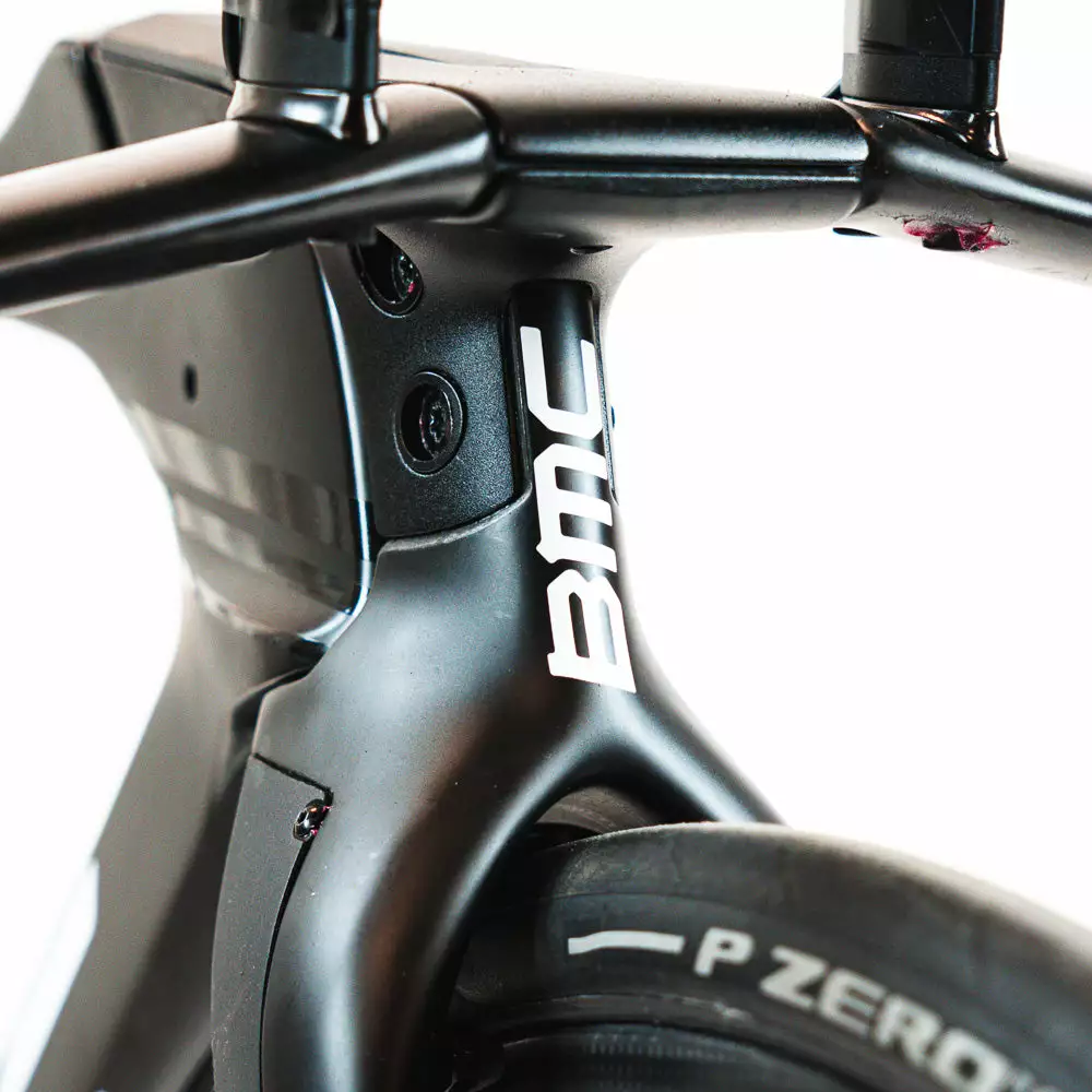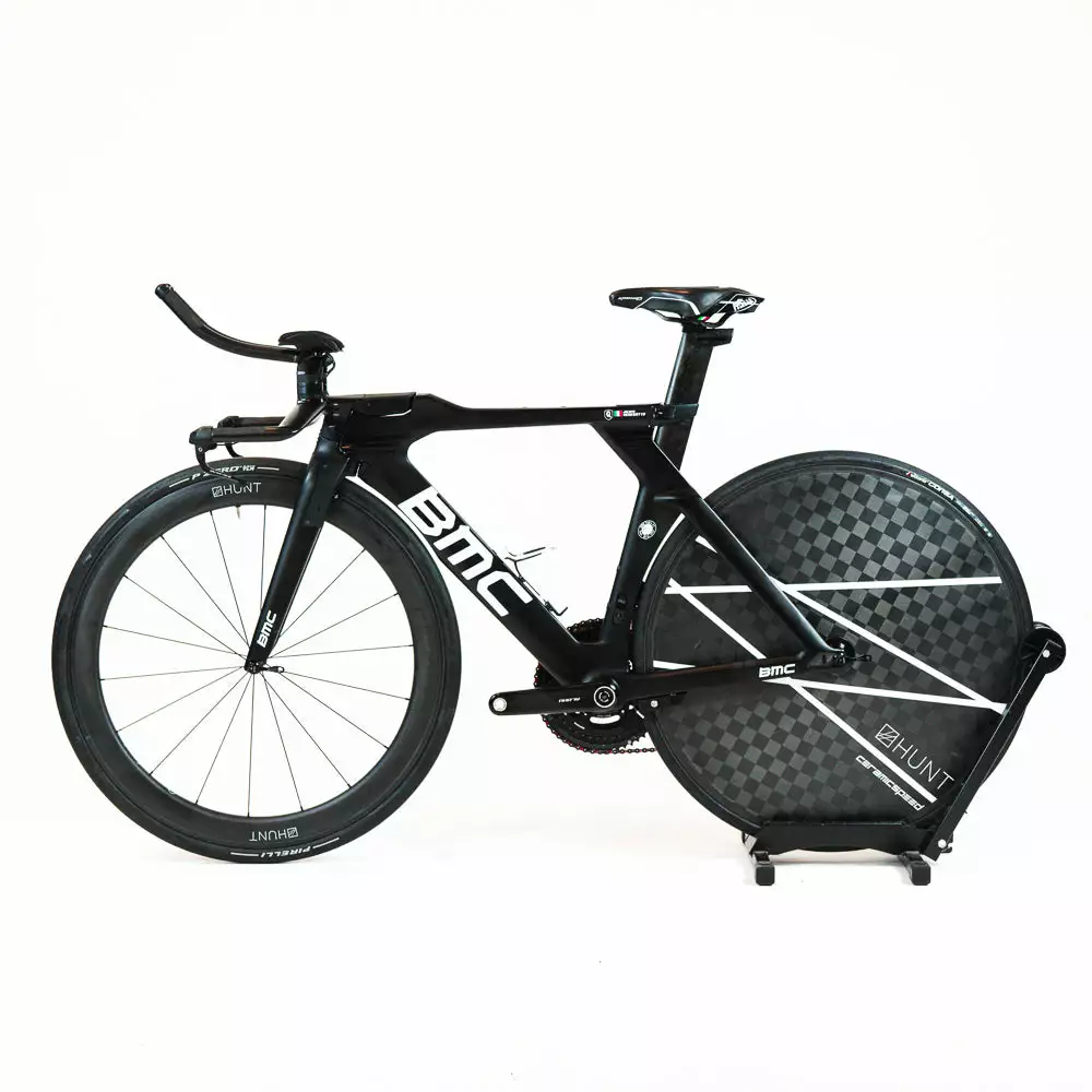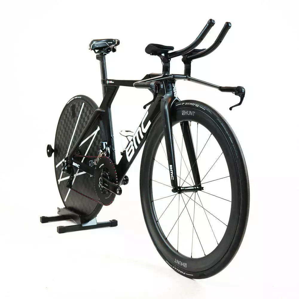 The Frameset has been used but is in Very good condition. The frameset is built with a Shimano Dura-Ace Di2 groupset, a Rotor power meter carbon crankset, team-specific BMC components and a Hunt Aero TT-specific wheelset.