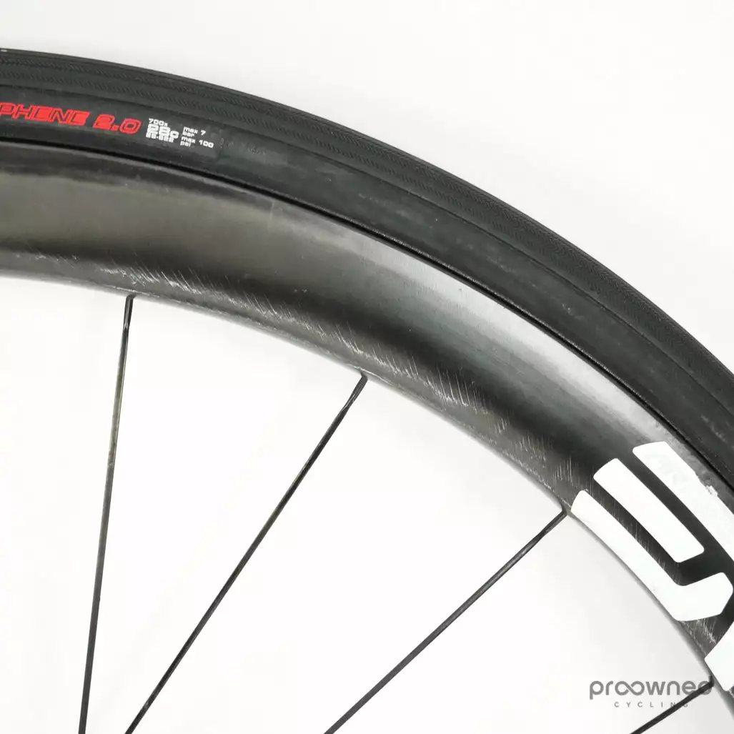 The wheels are equipped with a pair of Vittoria Corsa Graphene 2.0. The tire is worn and you, therefore, do not pay for it.