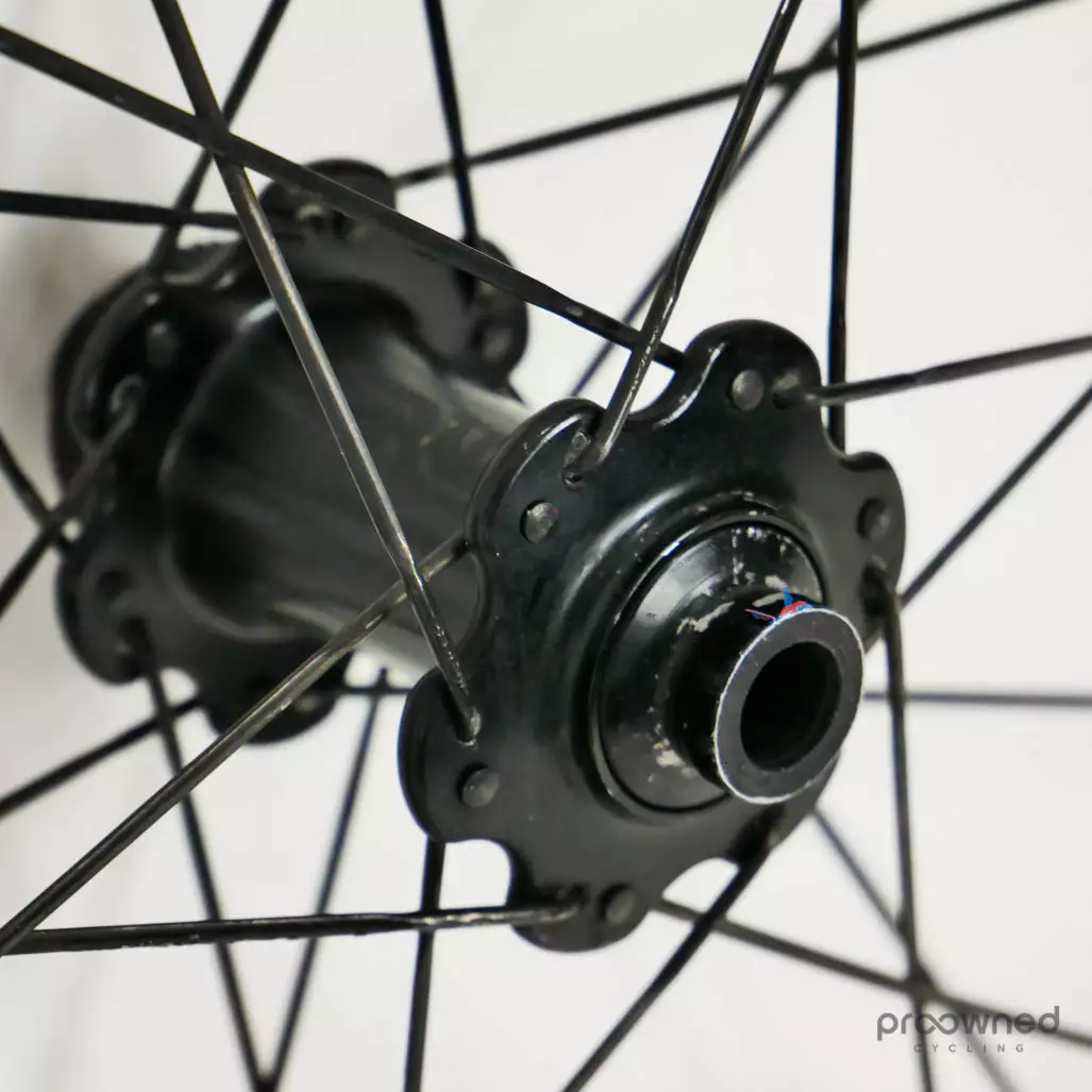 The wheelset has some cosmetic marks and scratches but nothing that affects the performance of the wheelset. Bearings are running smoothly and the wheelset is overall in really good condition.