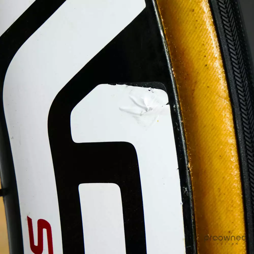 The wheelset has some marks and scratches. They are purely cosmetic and doesn’t affect the strength and the performance of the wheelset.