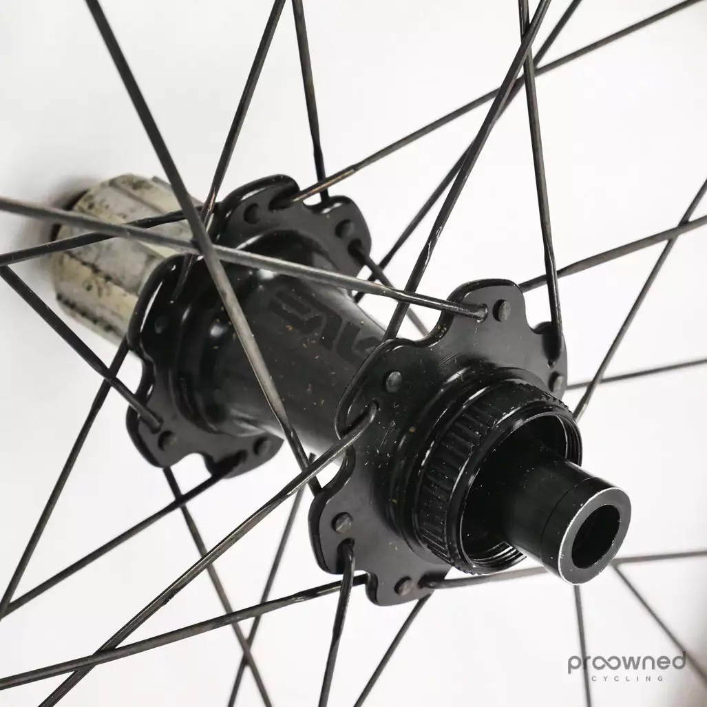 The wheelset is equipped with a combination of Vittoria Corsa Graphene and Corsa Control tires. The tires are used but in good condition.