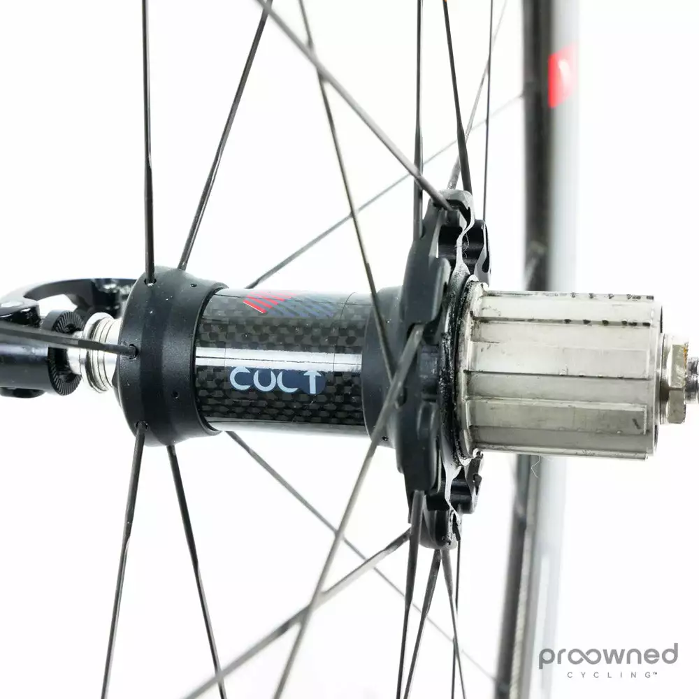 The wheels are equipped with Campagnolo CULT bearings which are the finest ceramic bearings that Campagnolo produces. The bearing has a friction coefficient 40% lower than standard sealed bearings and can spin 5 1/2 times longer.