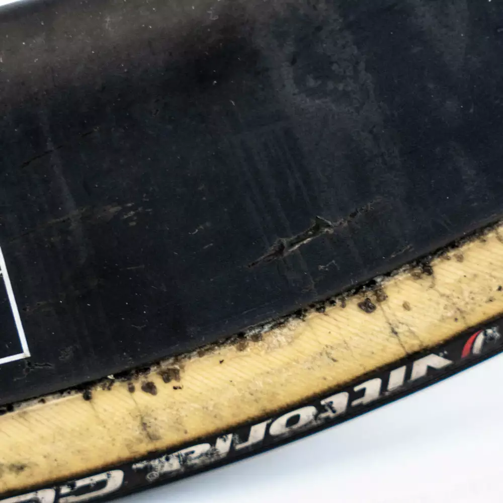The wheel is equipped with Vittoria Corsa Graphene tubular 2.0 in 25mm which is used but in good condition.