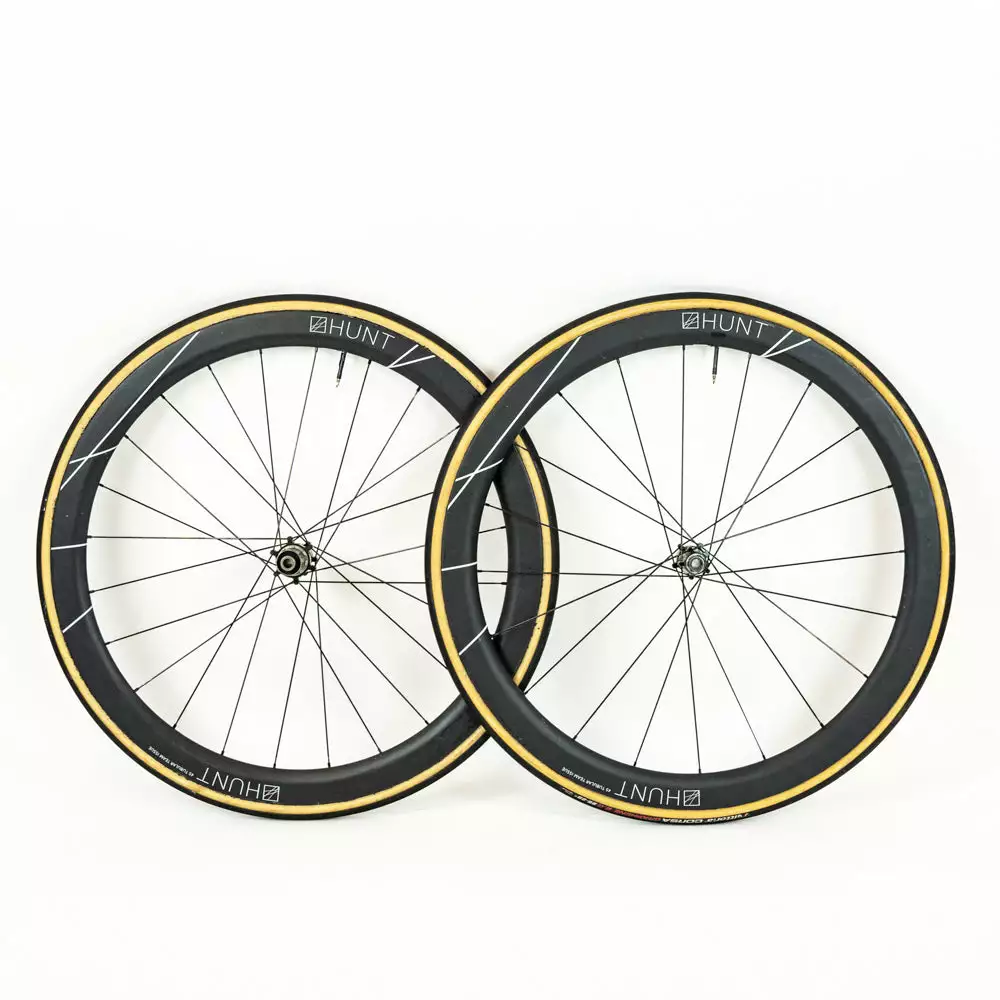 HUNT 45 Team Issue disc wheelset in Carbon with tubular tires.