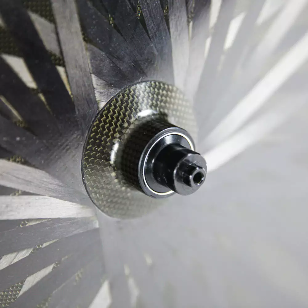 The carbon spoke construction not only looks incredible but offers superior lateral stiffness. But be aware, that the enormous stiffness for more propulsion is at the expense of comfort, meaning a setup with this wheel will leave you with raw performance and speed.