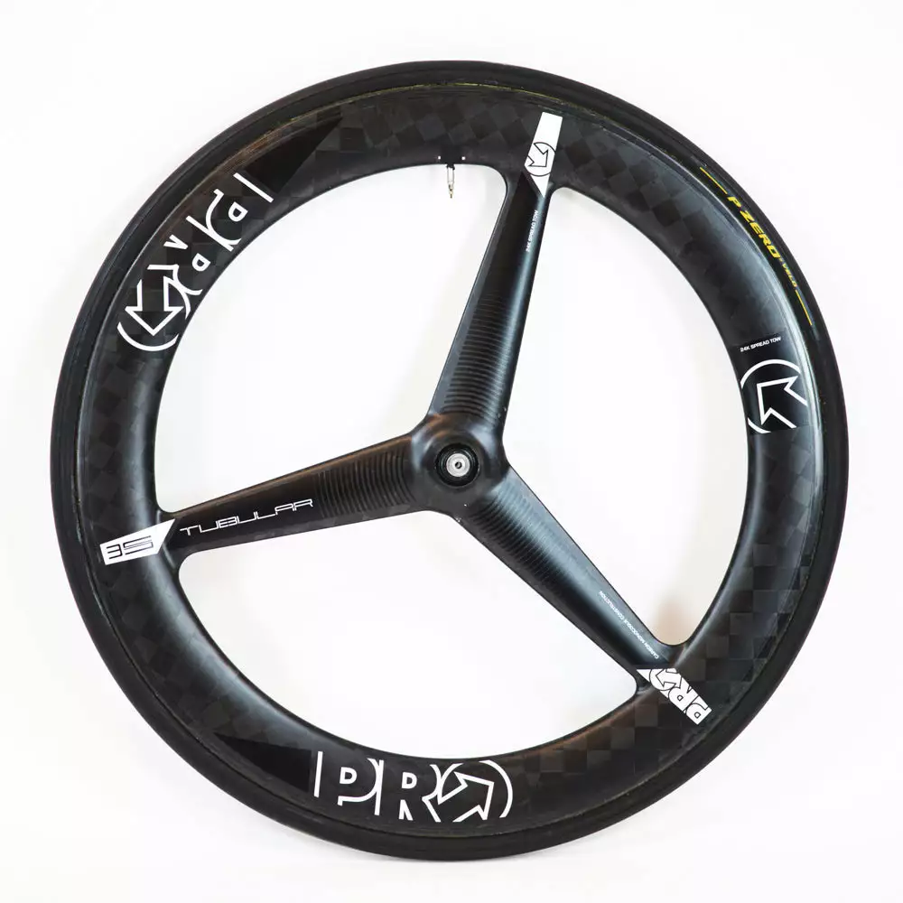 PRO TeXtreme 3-Spoke tubular carbon front wheel for rim brake.