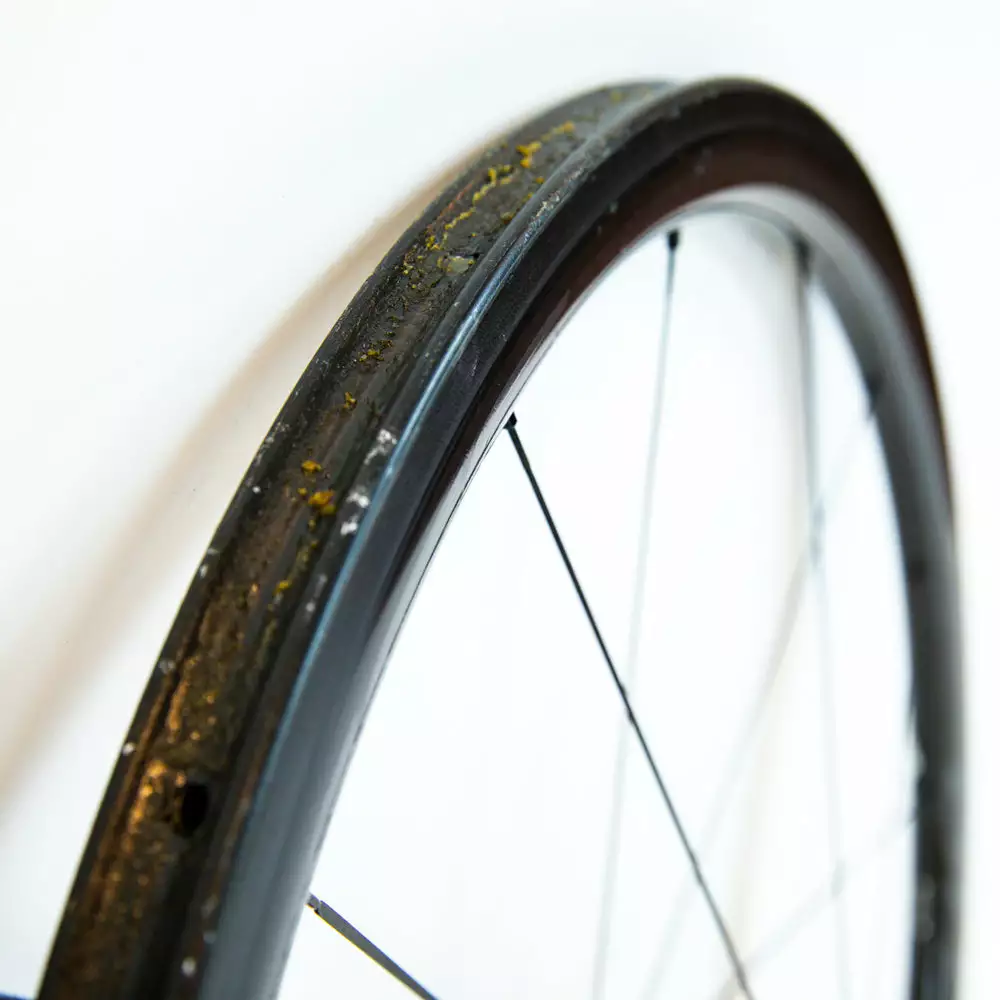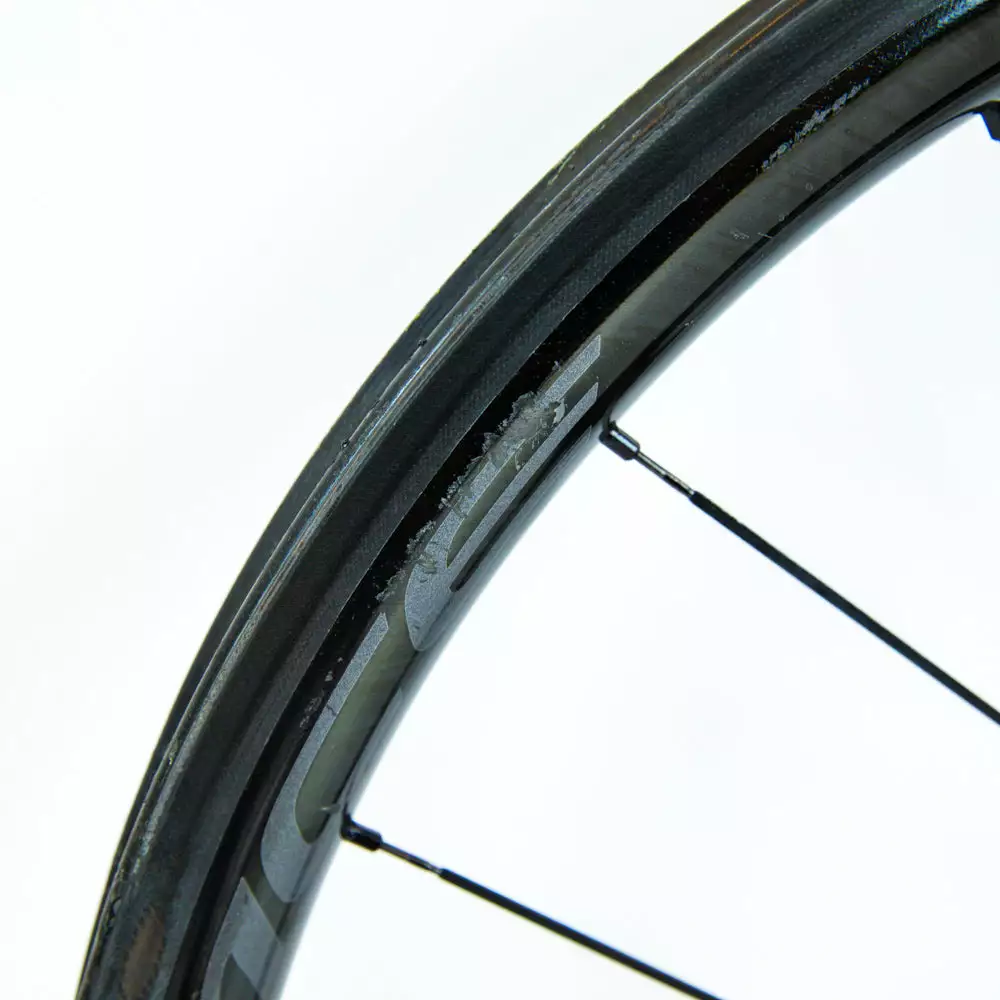 The wheelset is used. It comes with some marks and glue residue from usage (mostly clearcoat). The wheels are in good condition with some scratches. The bearings are in a decent condition and still have miles left in them.