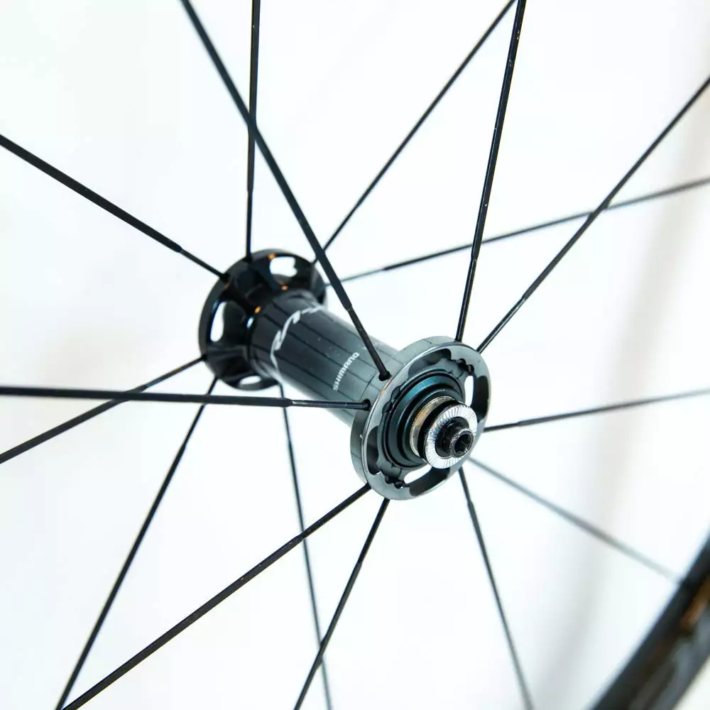 Shimano Dura-Ace C40 WH-R9100 tubular carbon wheelset for rim brakes.