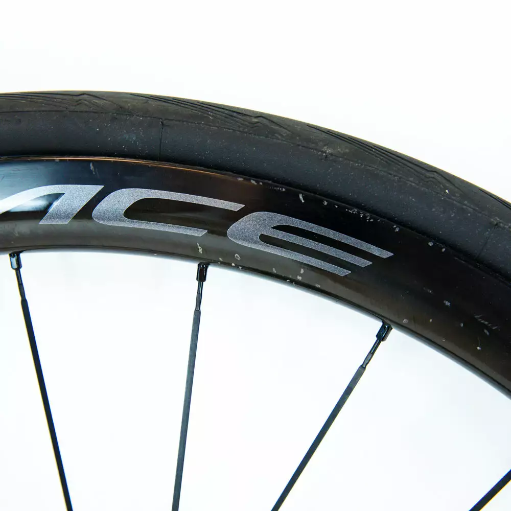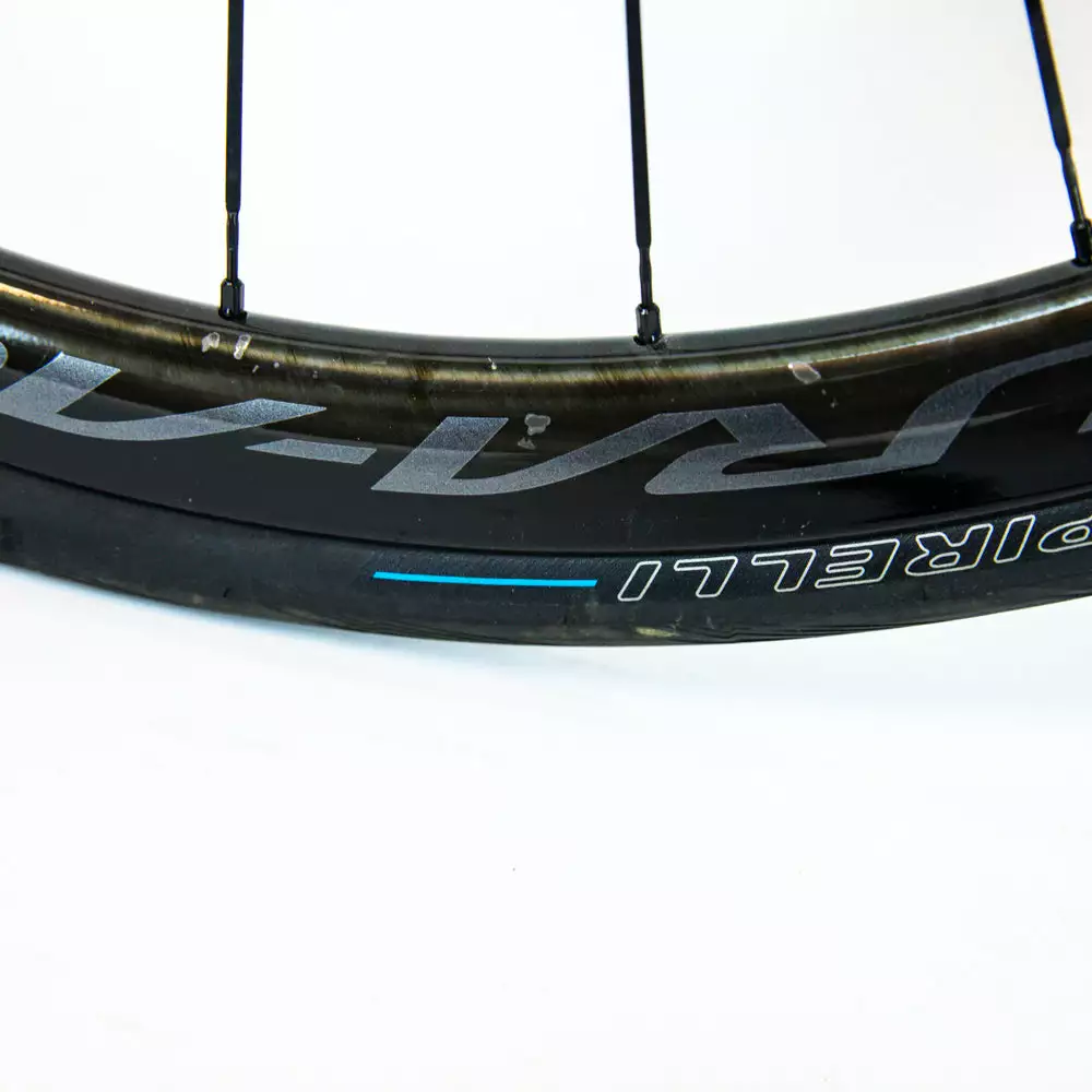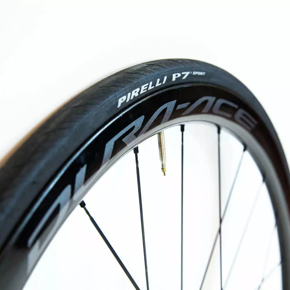 This wheelset comes with a Pirelli P Zero Velo 4S front tire and a Pirelli P7 Sport rear tire.