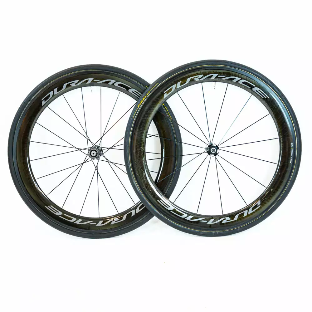 Shimano Dura-Ace C60 R9100 tubular carbon wheelset for rim brakes.