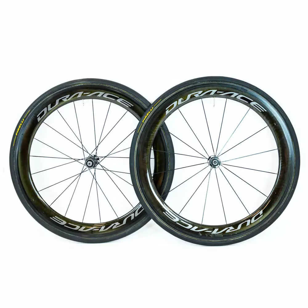 Shimano Dura-Ace C60 R9100 tubular carbon wheelset for rim brakes.