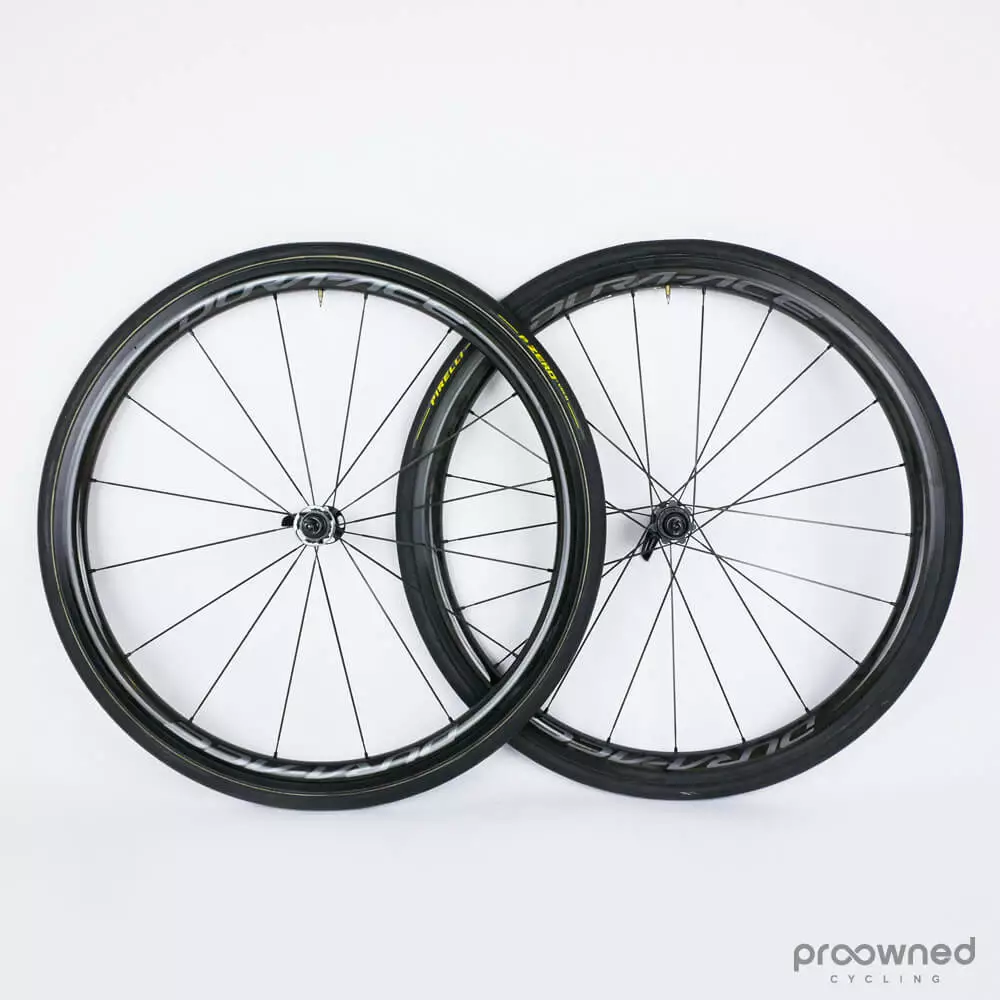 Shimano Dura-Ace C40 road carbon wheelset. The C40 is a wheelset that comes with 11speed and a 40mm aero rim.