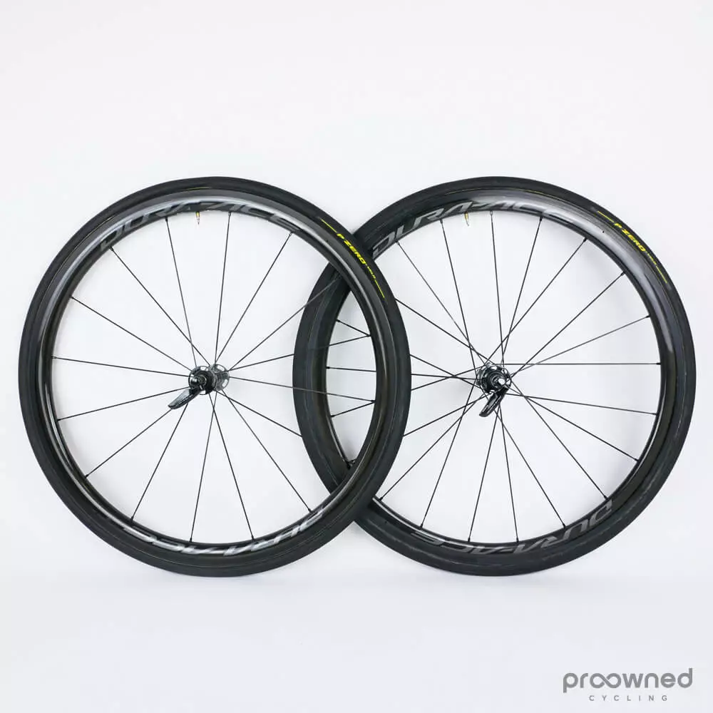 Shimano Dura-Ace C40 road carbon wheelset. The C40 is a wheelset that comes with 11speed and a 40mm aero rim.